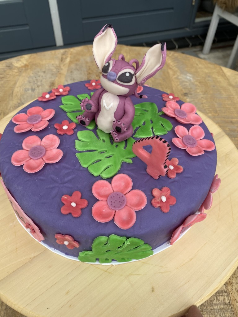 Deze op verzoek, iets lagere taart is gevuld met 1 laag bosvruchtenjam, blauwe bessen en lichtgezoete slagroom.