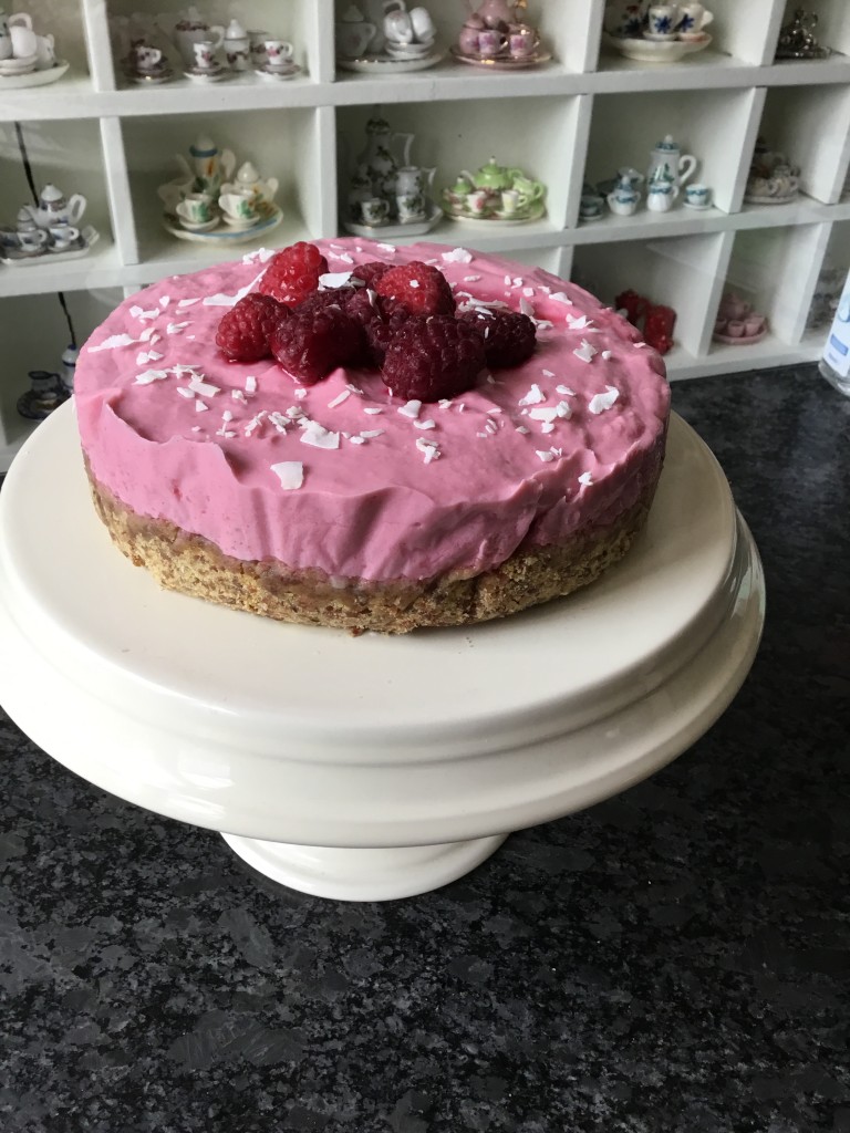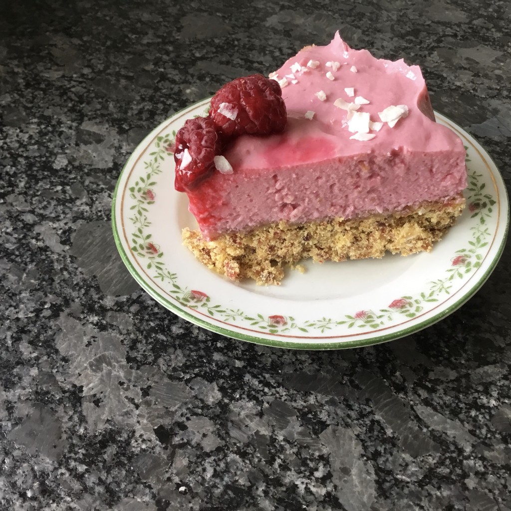 Dit heerlijk frisse frambozentaartje is niet alleen heel erg lekker, maar ook nog eens lactosevrij, glutenvrij, Vegan en vrij van geraffineerde suikers. Van dit taartje kan dus eigenlijk bijna iedereen smullen!