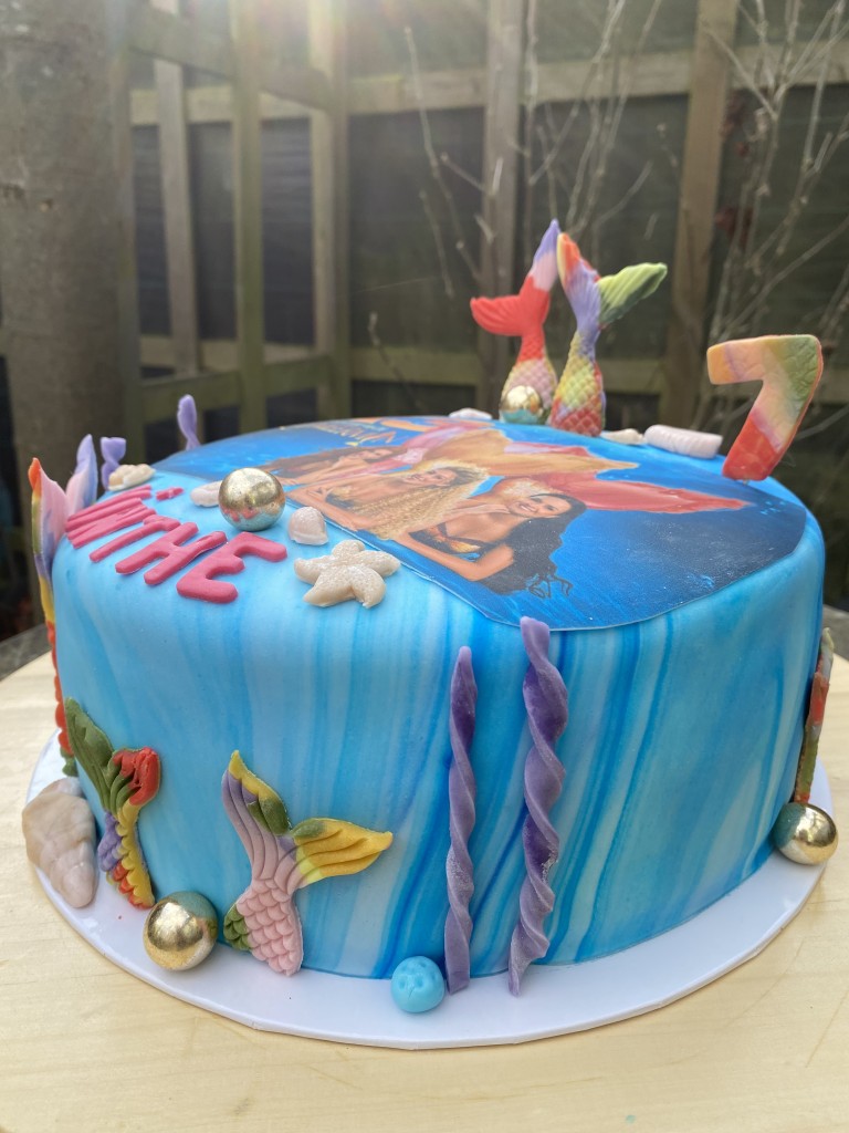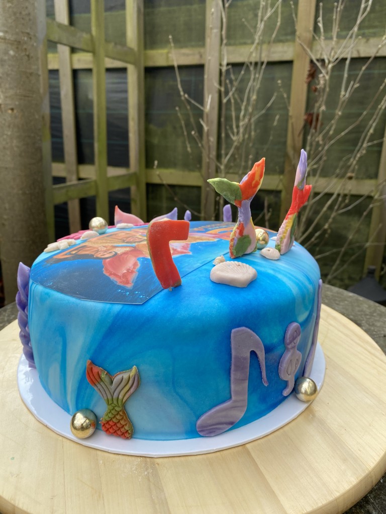 Deze leuke glutenvrije K3 zeemeerminnen taart is gevuld met heerlijke aardbeien, Chantilly Cream en een laagje aardbeienjam.