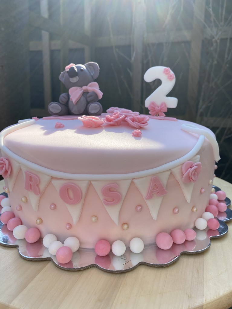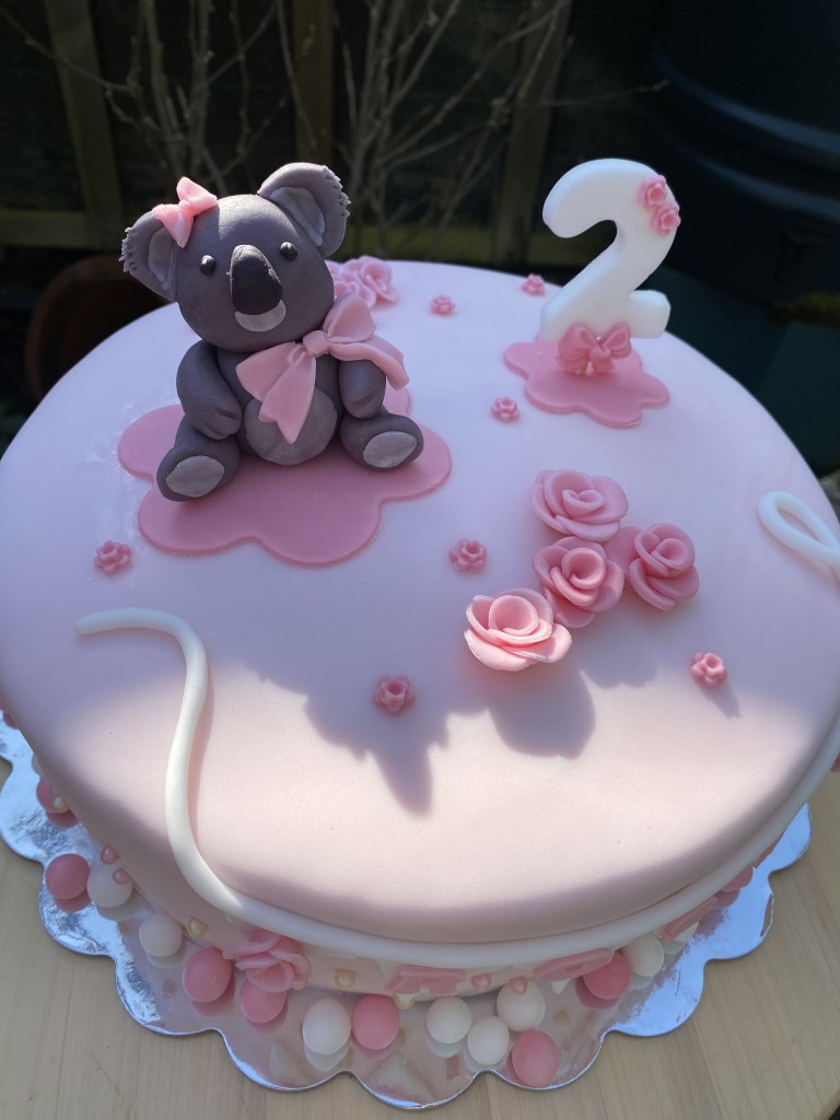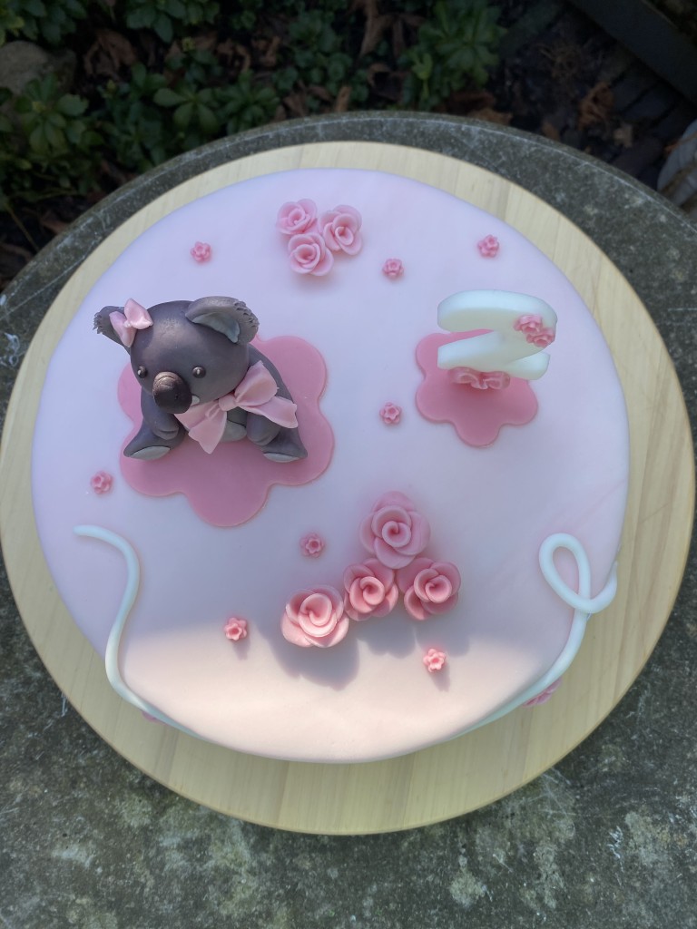 Deze schattige koala taart is gevuld met Chantilly Cream, bastognekoekjes kruim en een laagje jam.